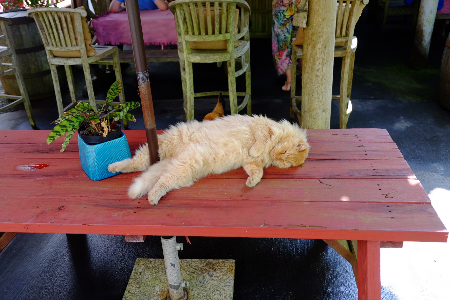 そこで、コーヒー豆を買って…思っていたら、併設されたカフェの机に猫が…。