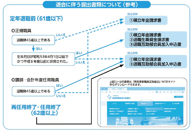 令和7年度末でご退職の方は、互助組合退会の手続きが必要となります。下記のリンクより各様式を